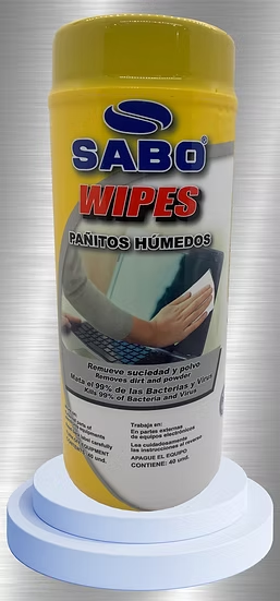 Elimina el 99% de virus y bacterias (toallas húmedas para la limpieza) Cantidad por caja: 40 unidades. Producto para utilizarse por sí solo. Puede usarse sobre cualquier pantalla. Una vez que el Wipe seque, repita la operarción y deseche. |