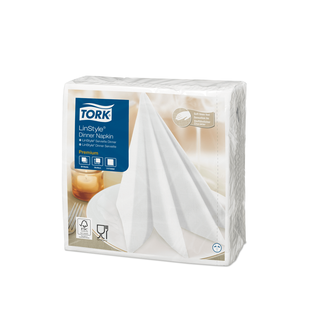 Las servilletas Tork LinStyle® son ideales para restaurantes que ofrecen un servicio completo y donde la calidad y experiencia son especialmente importante para impresionar a tus clientes. Esta servilleta de papel, brinda la sensación de tela con los beneficios de un solo uso, se caracteriza por su suavidad y durabilidad durante toda la visita. Refleja en tu mesa la elegancia con una servilleta de aspecto y tacto premium y combina tu menú con los colores correctos. |